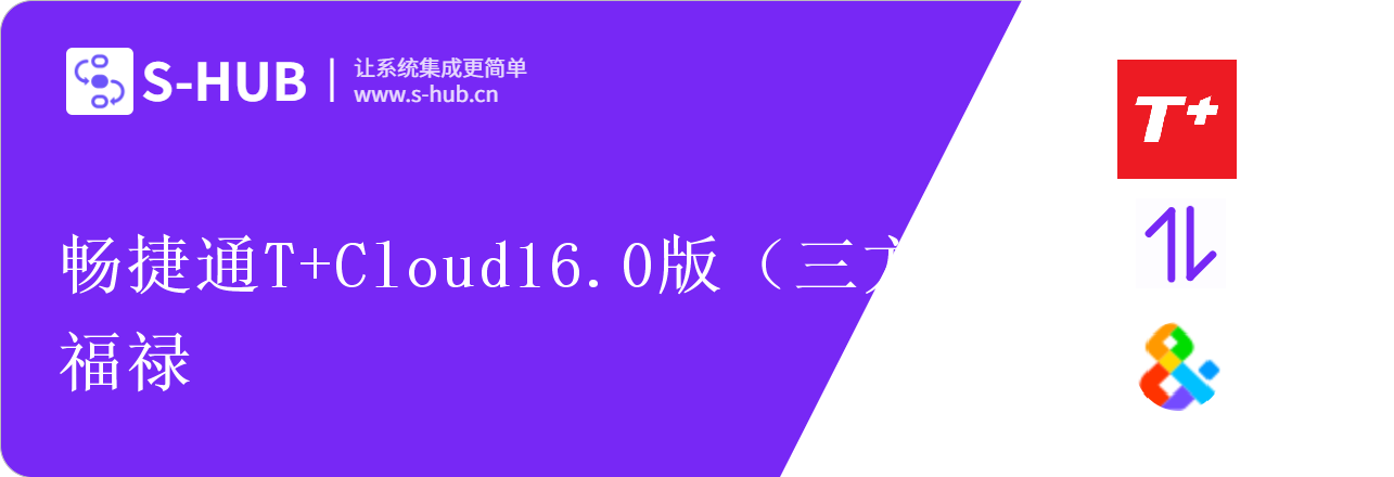 S-HUB 畅捷通T+Cloud16.0版(三方)应用连接器对接能力