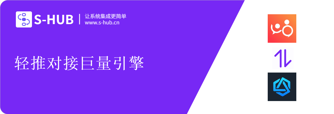 S-HUB多系统集成连接器,致力于让多系统集成变得更简单,2019年发布V1.0以来,已集成主流的钉钉、企业微信、飞书、金蝶 云·星空、用友ERP等各类系统50余个,累计服务客户100+,平均帮助企业节省60%系统集成本。