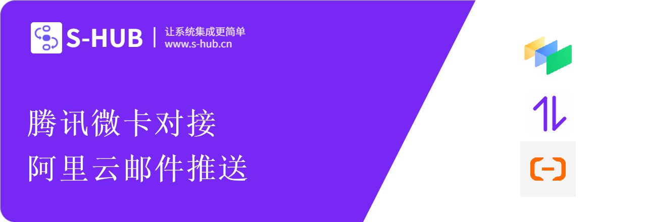 S-HUB多系统集成连接器,致力于让多系统集成变得更简单,2019年发布V1.0以来,已集成主流的钉钉、企业微信、飞书、金蝶 云·星空、用友ERP等各类系统50余个,累计服务客户100+,平均帮助企业节省60%系统集成本。