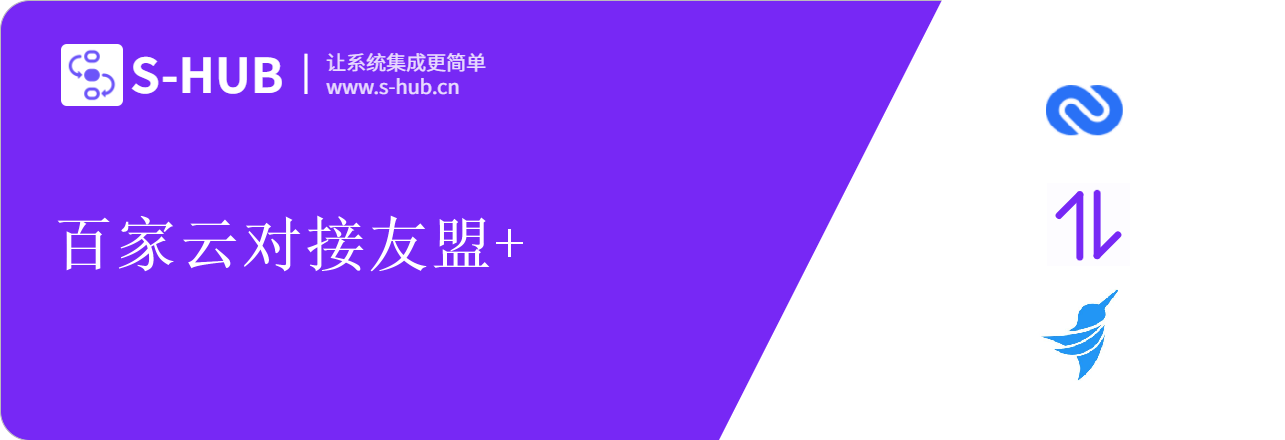 S-HUB多系统集成连接器,致力于让多系统集成变得更简单,2019年发布V1.0以来,已集成主流的钉钉、企业微信、飞书、金蝶 云·星空、用友ERP等各类系统50余个,累计服务客户100+,平均帮助企业节省60%系统集成本。