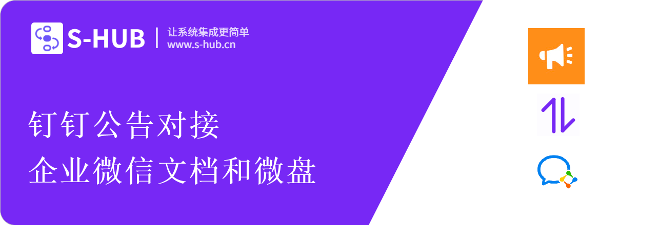 S-HUB 钉钉公告应用连接器对接能力